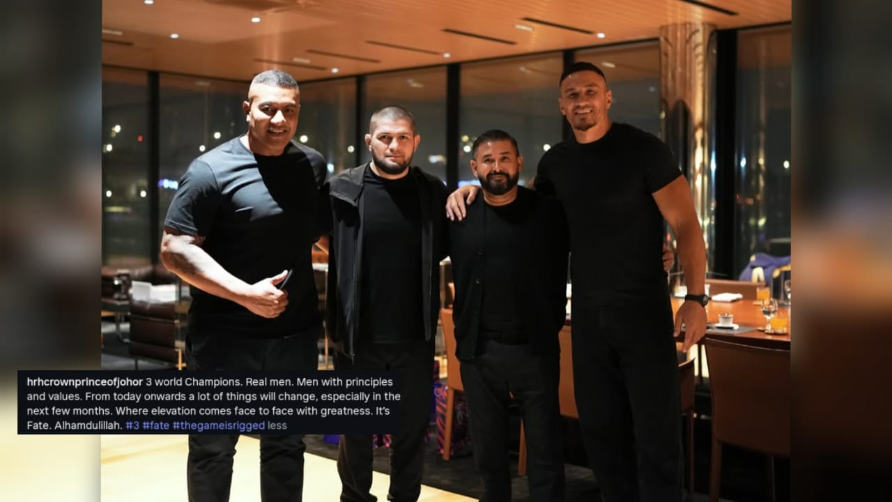 Dalam hantaran tersebut, baginda berkongsi gambar bersama tiga ikon sukan dunia iaitu bekas juara dunia UFC, Khabib Nurmagomedov, bekas pemain ragbi New Zealand, Sonny Bill Williams dan bekas juara MMA, Soa ‘The Hulk’ Palelei dari Australia.