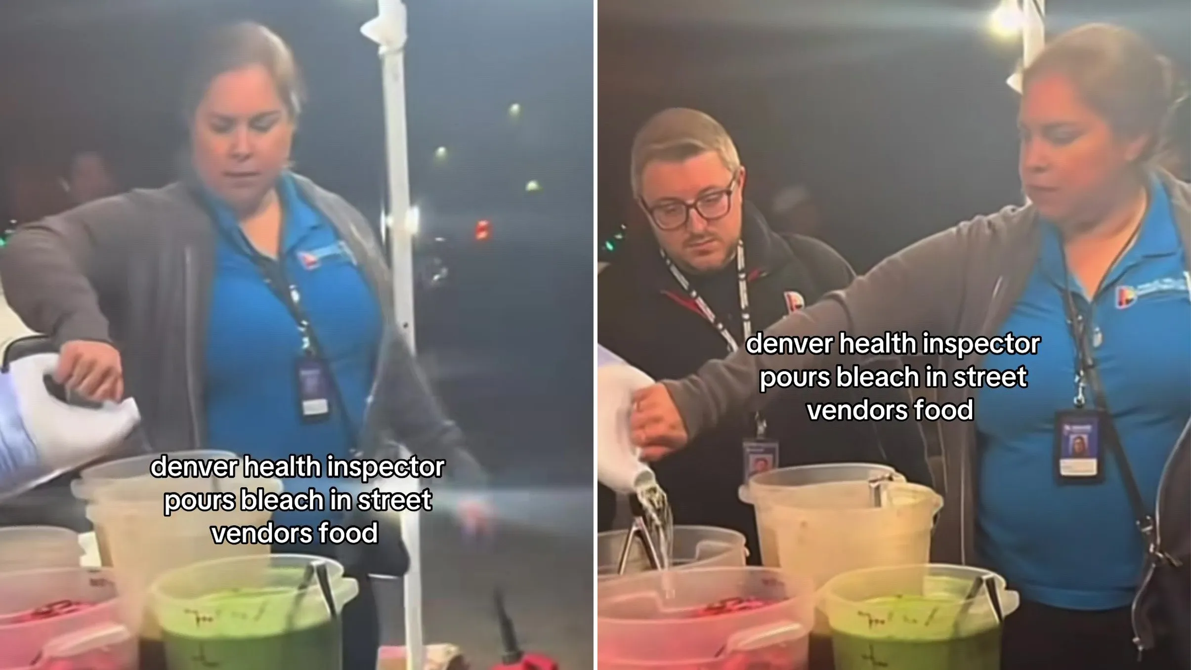 Merinyu kesihatan di Denver, negeri Colorado dirakam bertindak demikian ketika mereka menutup sebuah gerai menjual taco yang tidak mempunyai lesen, Sabtu lalu.