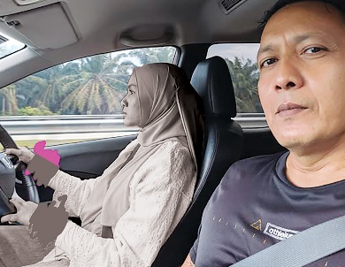 “Ini gambar kami dalam perjalanan pulang ke Mentakab, Pahang selepas mengambil jubah konvokesyen di UKM Khamis lalu (13 November). Ketika itu dia tidak tidur walaupun kebiasaannya dia akan tidur bila aku memandu.