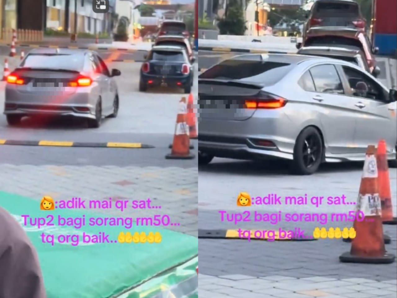 Menerusi video dimuat naik seorang penghantar makanan tersebut pada TikTok Mjas4580, memperlihatkan sebuah kereta dipandu wanita tersebut meninggalkan kawasan sebuah pusat membeli-belah di Perai, Pulau Pinang selepas memberikan RM50 kepada mereka.