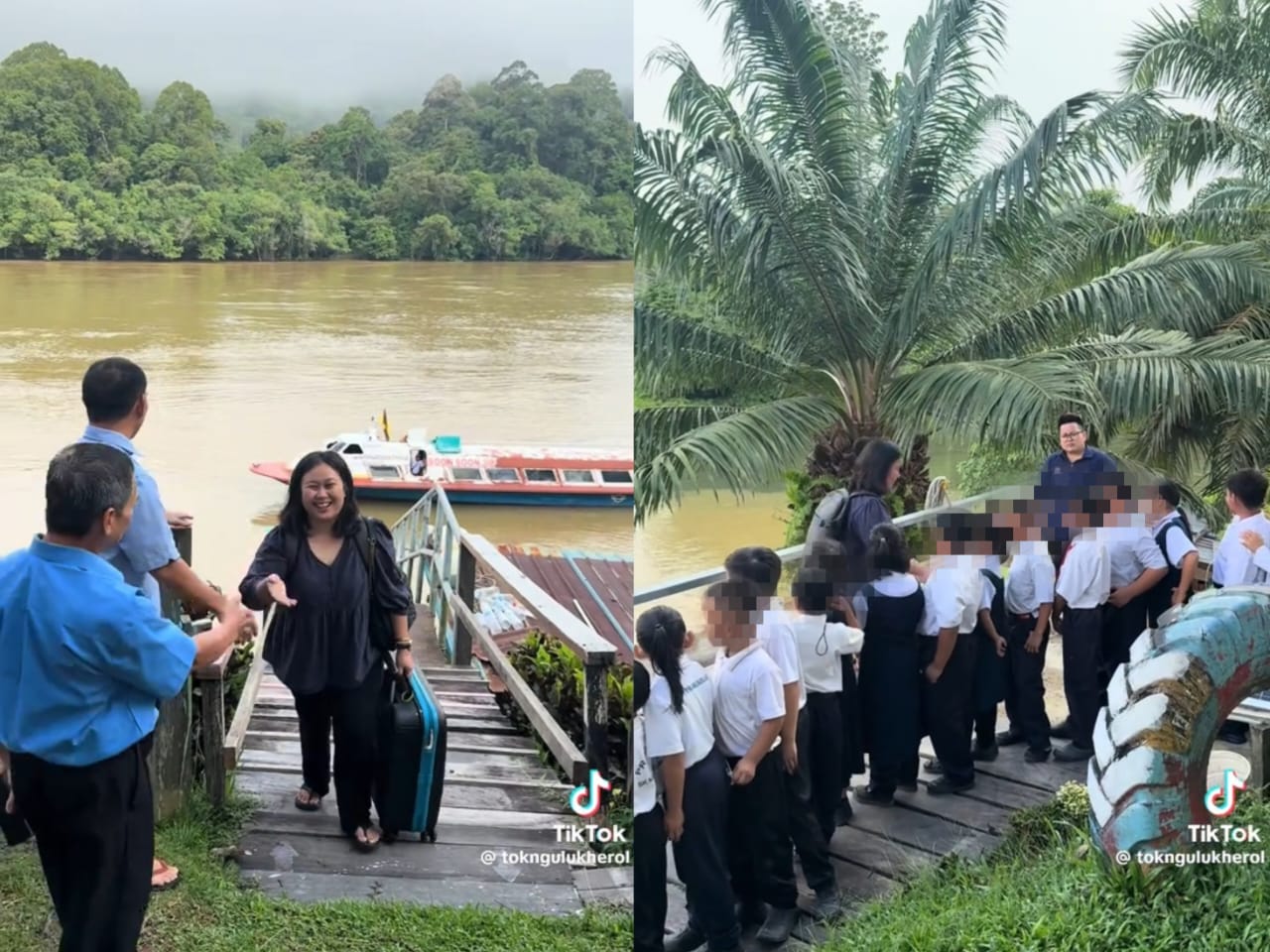 Menerusi video dimuat naik seorang guru pada TikTok Tok Ngulu, memperlihat warga sekolah termasuk guru dan murid menunggu di jeti bersedia menantikan kehadiran guru baharu tersebut.