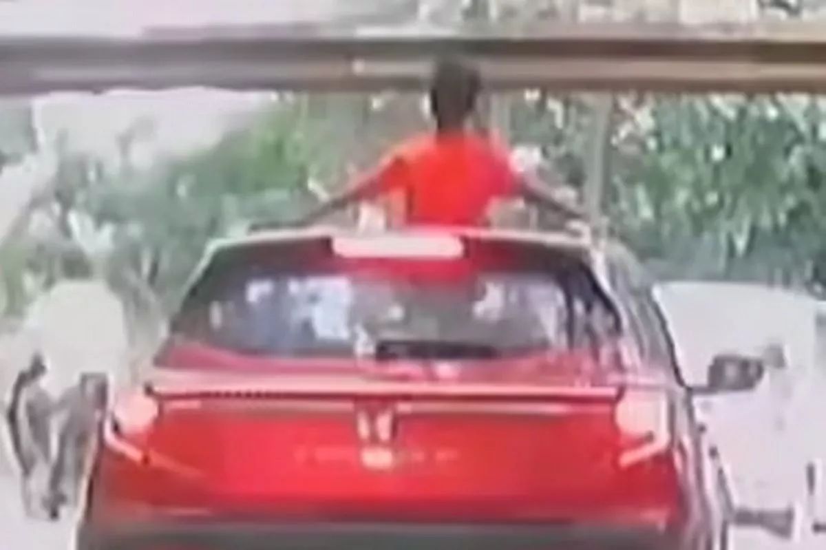 Rakaman video kejadian dimuat naik di platform X menunjukkan kanak-kanak terbabit berdiri dengan keadaan kepala terjulur keluar dari ‘sunroof’ SUV yang sedang bergerak laju sebelum melanggar palang besi.