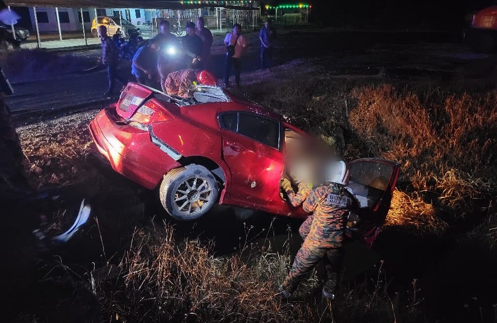 Arwah, Mohd. Aqil Naim Mohamad Tahar, 33, maut selepas kereta jenis Honda Civic yang dipandu hilang kawalan sebelum terbabas dan masuk ke dalam parit berhampiran bersebelahan masjid di Kampung Parit Panjang di sini hari ini.