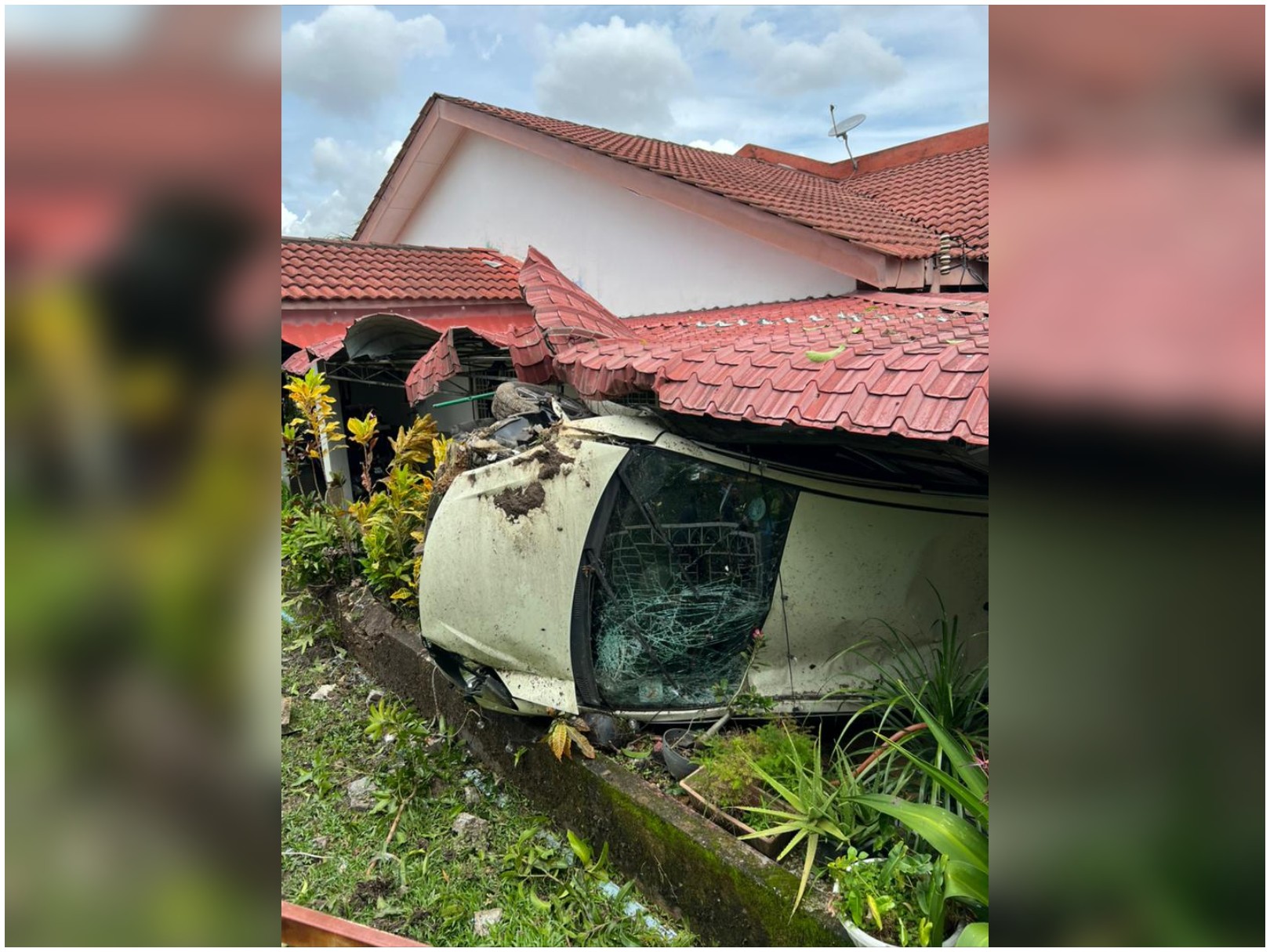 Dalam kejadian pukul 8.40 pagi tadi, sebuah kereta jenis Perodua Myvi terbabas dan terjunam pada ketinggian 10 meter ke kawasan rumah Amirul Zaki Abd. Rahim, 35, menyebabkan tembok pagar runtuh. Pemandu wanita berusia 33 tahun bagaimanapun selamat.