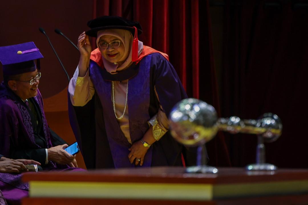 GEORGE TOWN – Penasihat Hartanah bagi Petronas, Datuk Seri Maimunah Mohd. Sharif dianugerahkan Ijazah Kehormat Doktor Perancangan Bandar dan Wilayah pada Upacara Konvokesyen Ke-63 Universiti Sains Malaysia (USM) di sini, hari ini.
