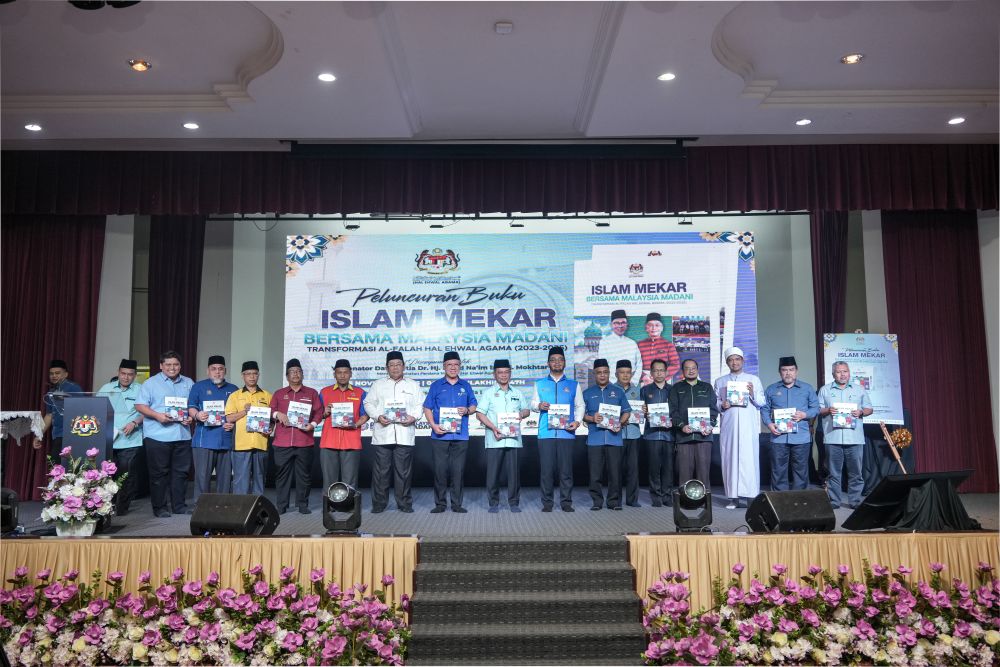 Mohd Na'im (tujuh dari kanan) melancarkan buku Islam Mekar Bersama Malaysia MADANI di Putrajaya baru-baru ini.