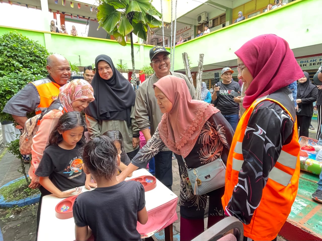 Beliau yang ditemani isteri keduanya, Che Intan Subri meluangkan masa kira-kira 30 minit menyantuni mangsa banjir di PPS berkenaan yang menempatkan kira-kira 484 mangsa dari daerah ini.
