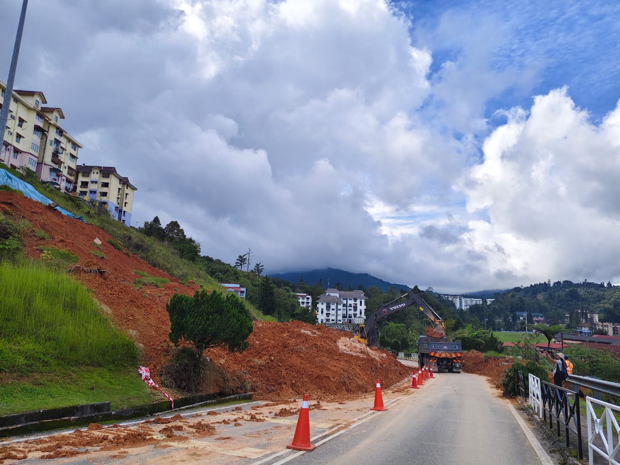 Katanya, setibanya pasukan di lokasi, didapati runtuhan tanah berlaku di laluan masuk utama ke Puncak Arabella dengan anggaran keluasan antara 40 hingga 80 meter.