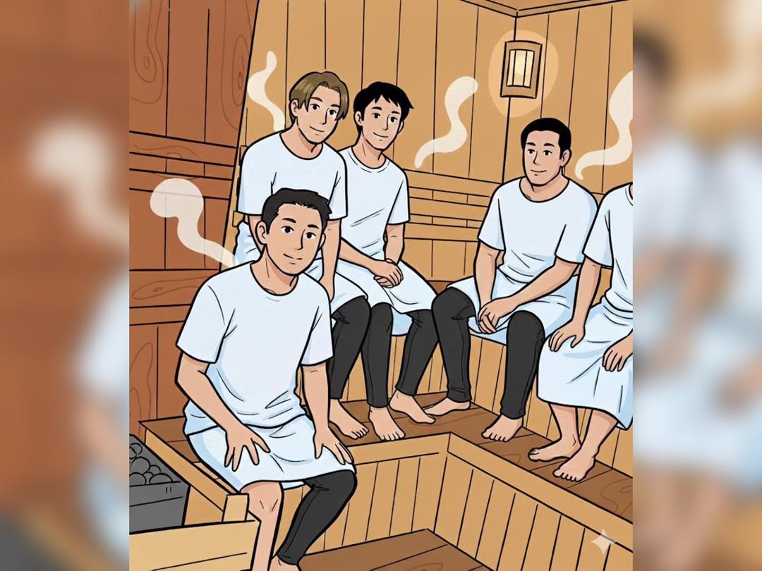 Dalam hantaran tersebut, turut dimuat naik sekeping gambar ilustrasi beberapa lelaki yang sedang mengambil mandi wap sambil bertuala putih.