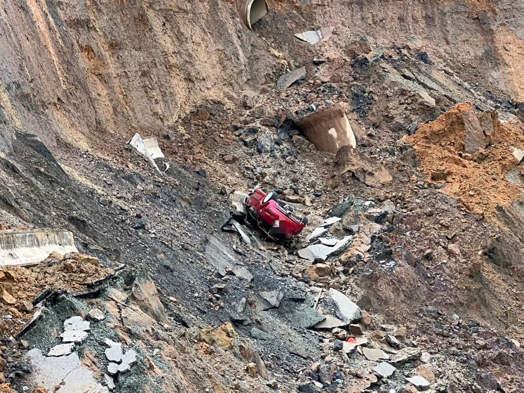 Dalam kejadian kira-kira pukul 5 pagi itu, kereta jenis Proton Satria Neo dipandu Che Mohd. Rizal Che Ali, 19, terjatuh ke dalam gaung yang terhasil akibat daripada runtuhan tanah selepas laluan itu mula ditutup pada pukul 12 tengah malam tadi.