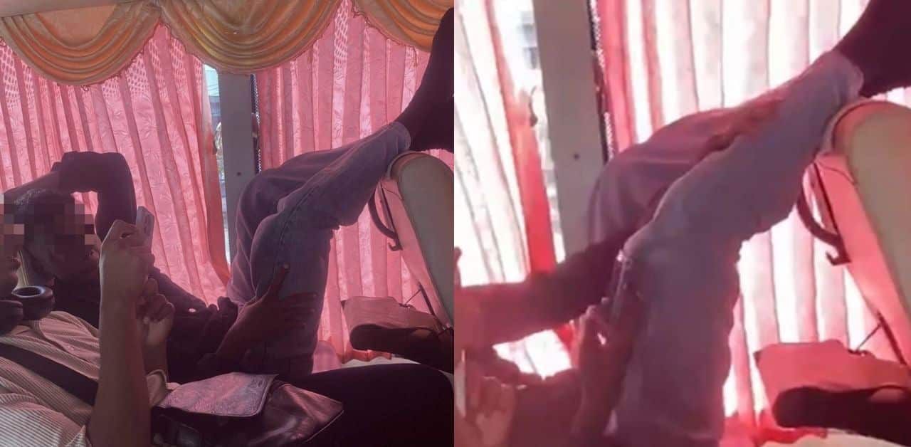Rakaman video seorang penumpang lain yang dimuat naik di platform Facebook menunjukkan lelaki terbabit menanggalkan kasut dan meletakkan kakinya di atas sandaran tempat duduk hadapan.