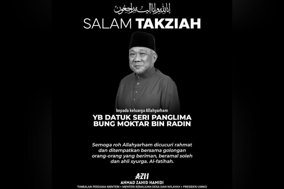 Ahmad Zahid dalam hantaran di Facebook mengakui kehilangan Bung Moktar merupakan tamparan besar buat dirinya dan seluruh kepimpinan UMNO serta Barisan Nasional (BN).
