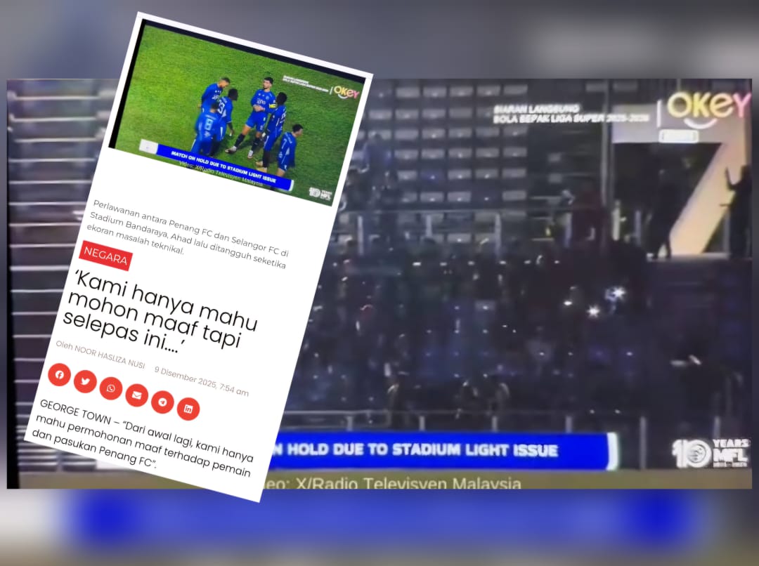 Perlawanan antara Penang FC dan Selangor FC di Stadium Bandaraya, Ahad lalu ditangguh seketika ekoran masalah teknikal, Ahad lalu.