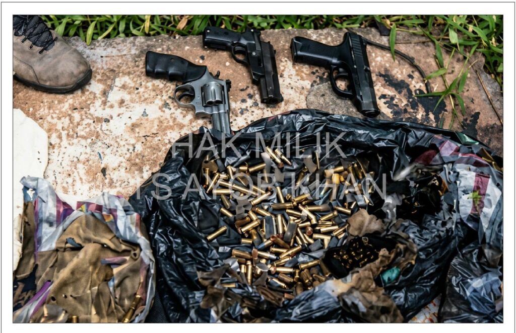 TIGA pucuk pistol dan peluru yang dirampas Cawangan Khas PDRM di Ulu Tiram, Johor Bahru. – IHSAN FACEBOOK AYOB KHAN MYDIN PITCHAY