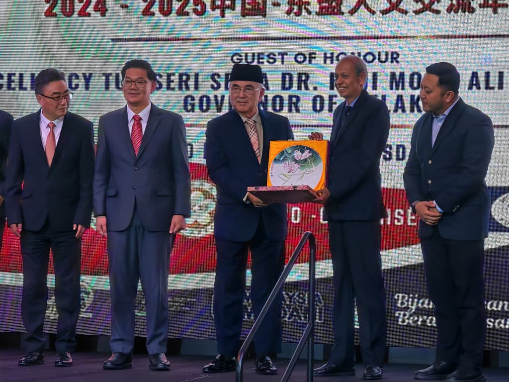 MOHD. RIDHWAN (kanan) menyaksikan penyempurnaan Upacara Penutup Asean-China, Year People To People Exhanges 2024-2025 oleh Yang Dipertua Negeri Melaka, Tun Mohd. Ali Mohd Rustam di Banda Hilir, di sini, hari ini.-AMRAN ALI/KOSMO!