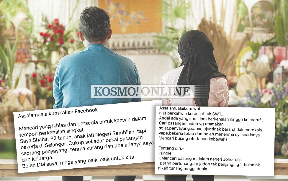 PETALING JAYA – Facebook, Threads dan Instagram kini bukan lagi sekadar ruang memuat naik foto atau mengikuti perkembangan semasa, tetapi telah bertukar menjadi tempat ‘mengiklankan diri’ untuk mencari jodoh. Di platform media sosial itu, semakin ramai wanita dan lelaki yang berani tampil memperkenalkan diri dan mendedahkan ciri-ciri pasangan idaman, dengan harapan agar dipertemukan jodoh serasi. Fenomena ini meledak sejak dua tahun lalu apabila hantaran-hantaran bertemakan ‘cari jodoh’ meraih sambutan hangat sehingga ada pasangan yang berjaya disatukan di atas pelamin melalui……