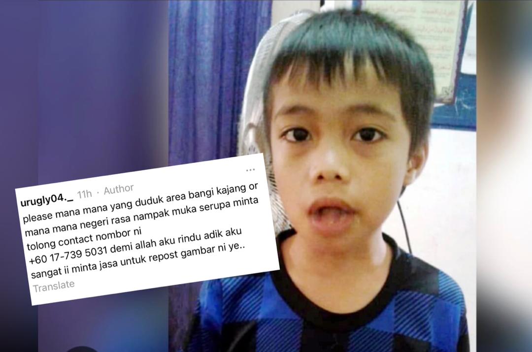 “Kalau ada yang nampak muka serupa, tolong hubungi nombor ni 017-739 5031. Nampak adik ini tolong pegang. Tolong sama-sama viralkan,” katanya.