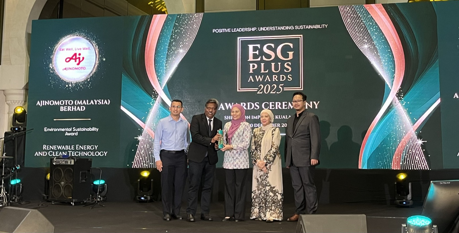PETALING JAYA – Ajinomoto (Malaysia) Berhad menerima pengiktirafan sebagai peneraju kelestarian di Anugerah ESG PLUS 2025 apabila meraih dua anugerah berprestij bagi pencapaiannya dalam Ekonomi Kitaran dan Pengurusan Sisa, serta Tenaga Boleh Baharu dan Teknologi Bersih dalam majlis yang berlangsung di Kuala Lumpur, kelmarin.