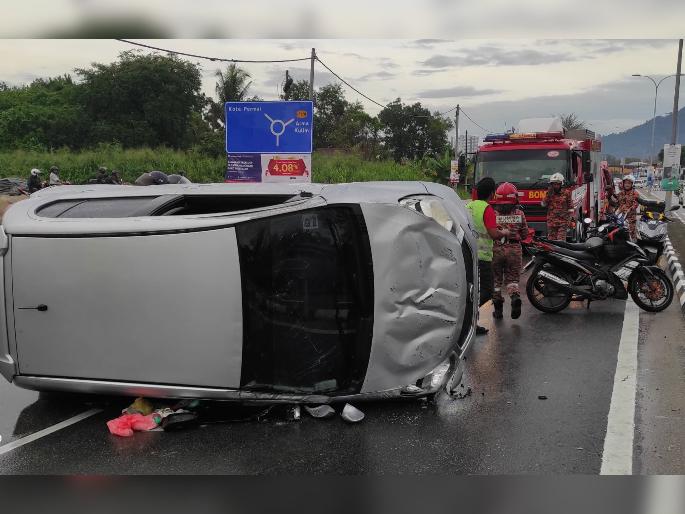 SEBERANG PERAI – Seorang wanita berdepan detik cemas apabila kereta yang dia pandu terbabas lalu melanggar paip air sebelum terbalik di Jalan Bukit Minyak, Bukit Mertajam di sini, petang tadi.