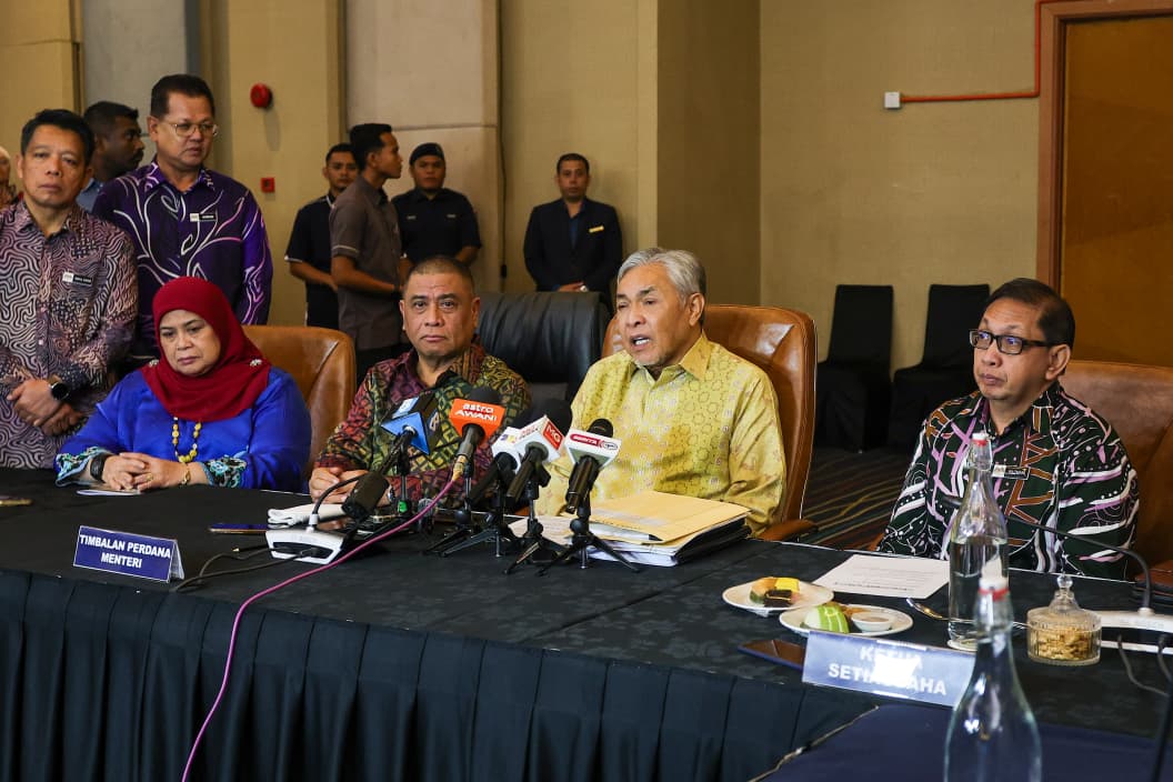 Ahmad Zahid (kanan) bercakap pada sidang akhbar di Hotel Casuarina@Meru di Ipoh hari ini. - Foto MUHAMAD NAZREEN SYAH MUSTHAFA