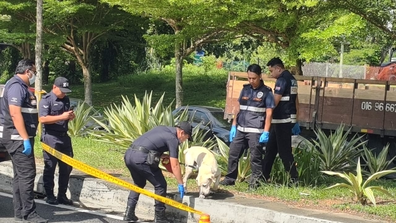 UNIT Forensik Polis Diraja Malaysia dan Unit Anjing Pengesan (K9) menjalankan siastan di lokasi kejadian tembakan melibatkan dua lelaki di jalan Rasah menghala ke Plaza Tol Port Dickson. Foto oleh NOR SHAFAWATI YUP