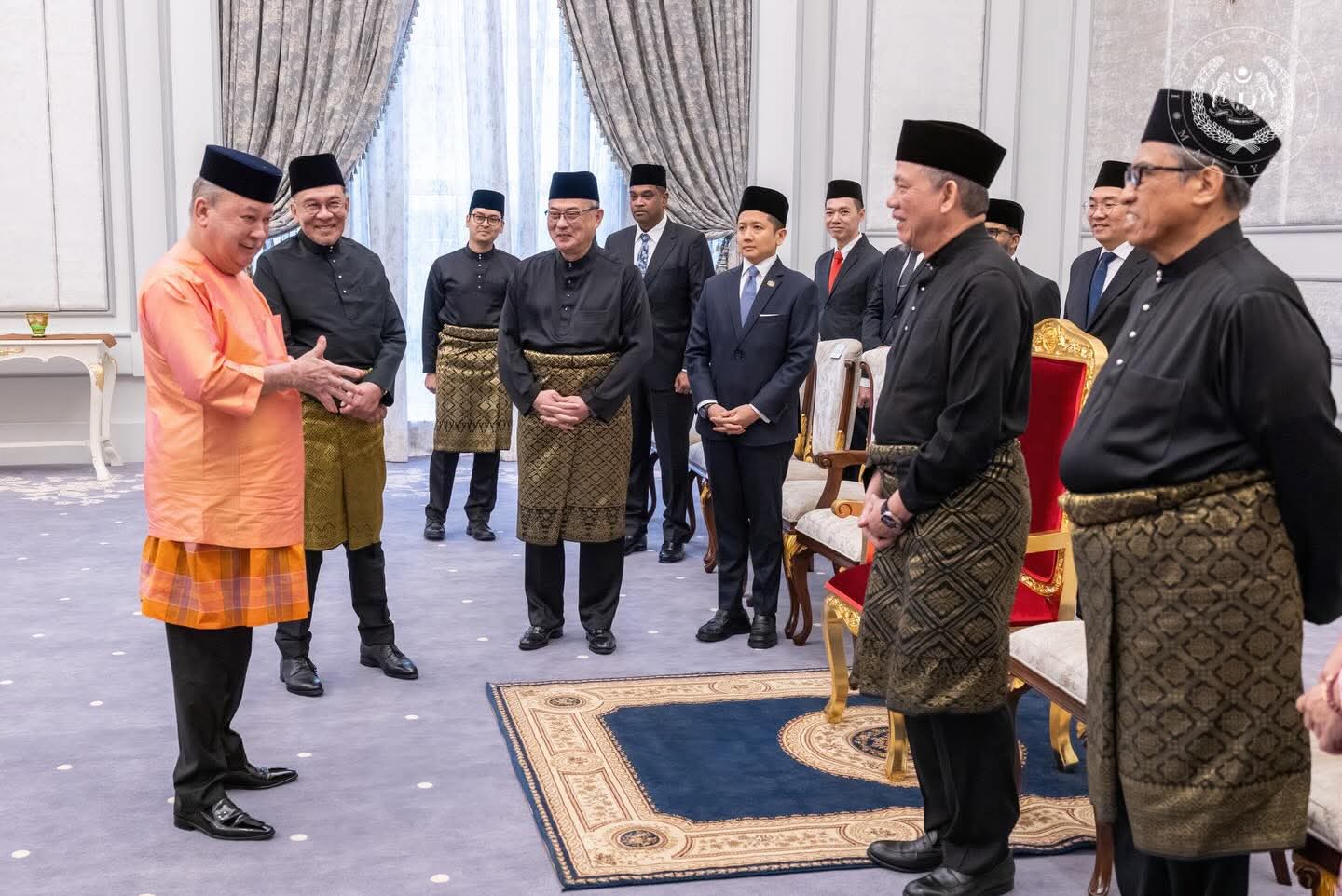 Majlis yang berlangsung di Istana Negara hari ini turut dihadiri oleh Perdana Menteri, Datuk Seri Anwar Ibrahim dan Timbalan Perdana Menteri, Datuk Seri Fadillah Yusof. – KOSMO! ONLINE