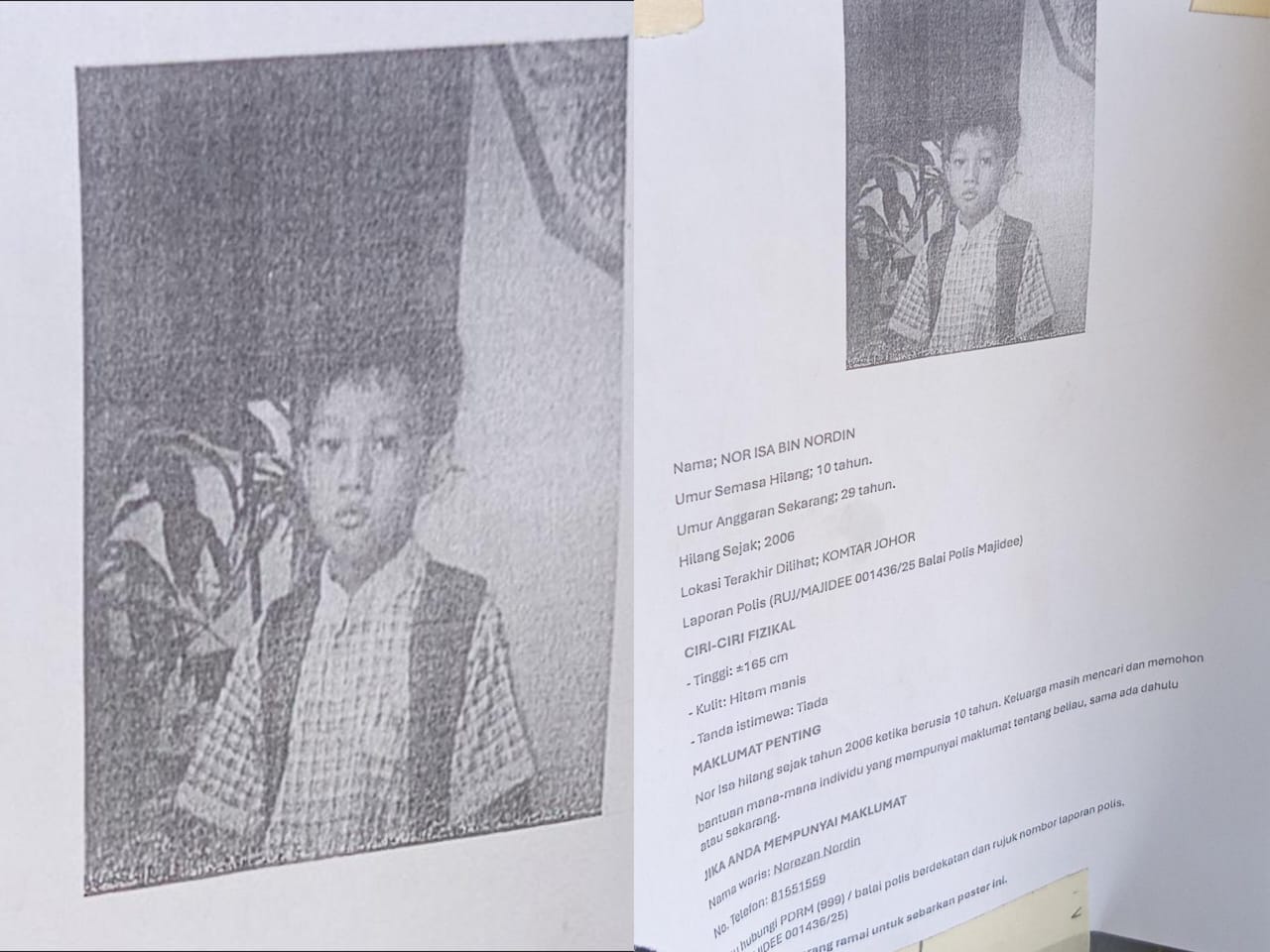 eluarga Nor Isa berusaha mencarinya yang hilang sejak 2006 ketika berusia 10 tahun. Foto Thread Nash Solution
