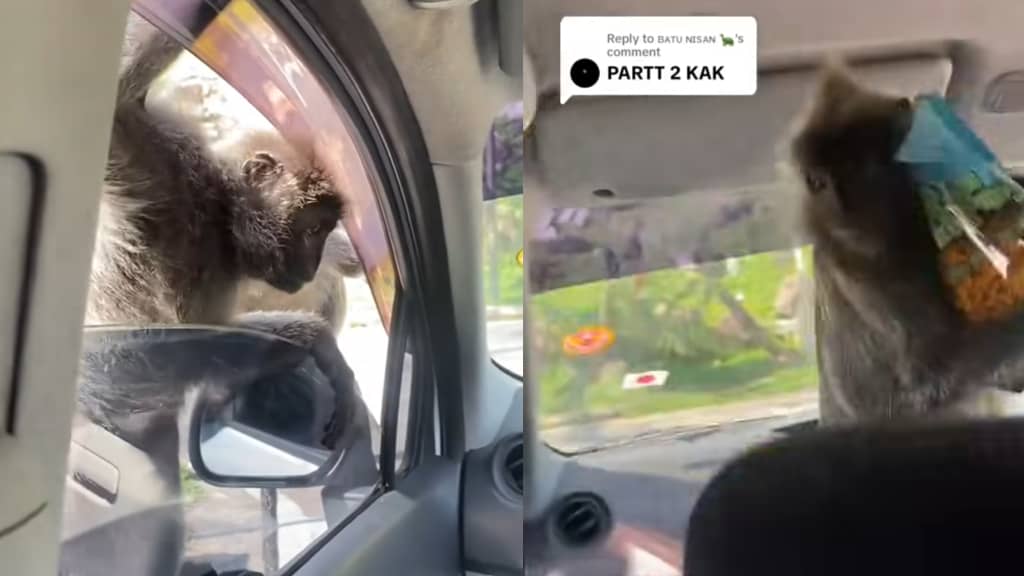 Itu reaksi ramai selepas seorang wanita bersama rakannya panik akibat dua ekor lotong yang cuba memasuki keretanya melalui tingkap, baru-baru ini.