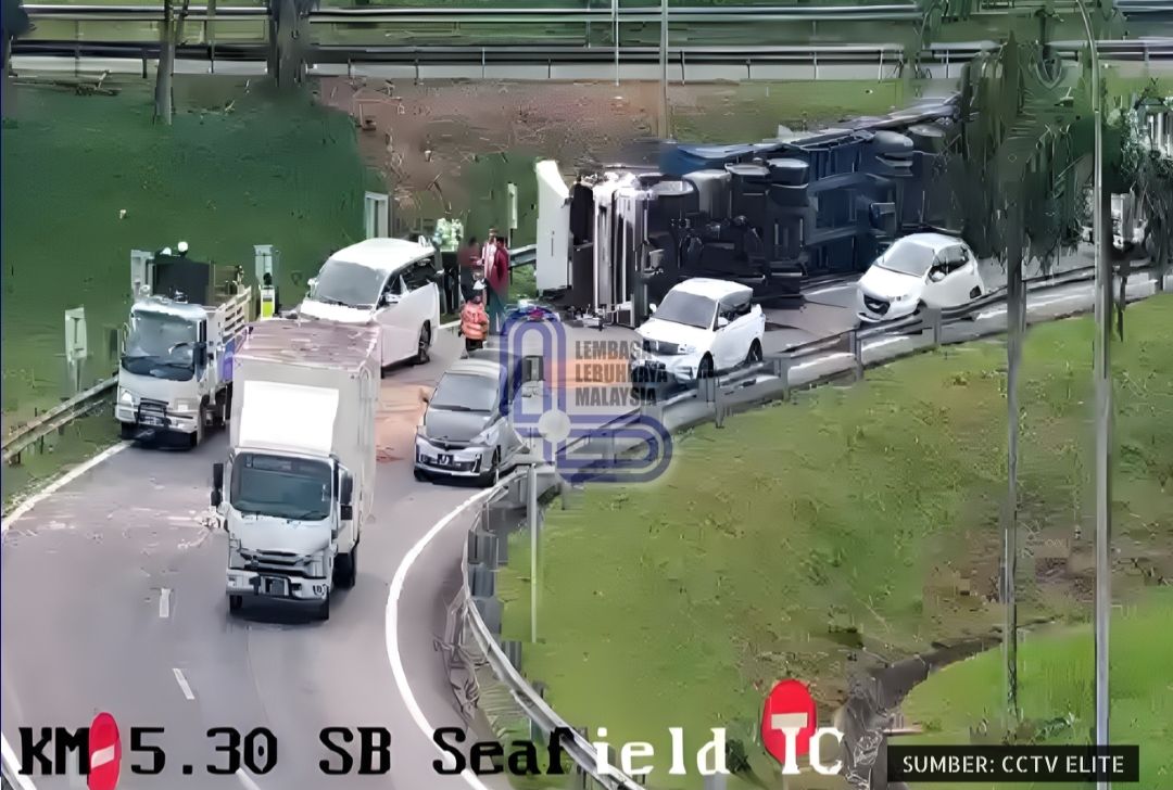 [VIDEO] Treler terbalik, trafik sesak 4km di Seafield