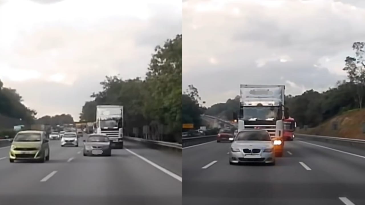 Menerusi hantaran di Threads, rakaman papan pemuka (dashcam) memaparkan pemandu lori treler menggunakan lampu tinggi berulang kali, seolah-olah memaksa pengguna jalan raya memberi laluan.