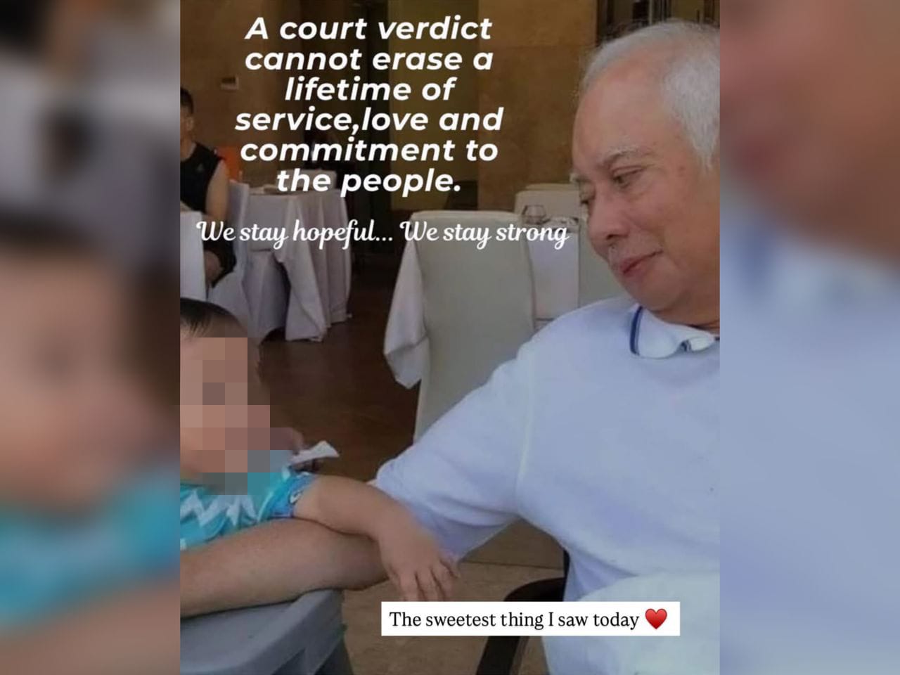 Dalam perkongsian sama, Yana turut memuat naik gambar Najib melihat ke arah cucunya yang disifatkannya sebagai momen yang manis.
