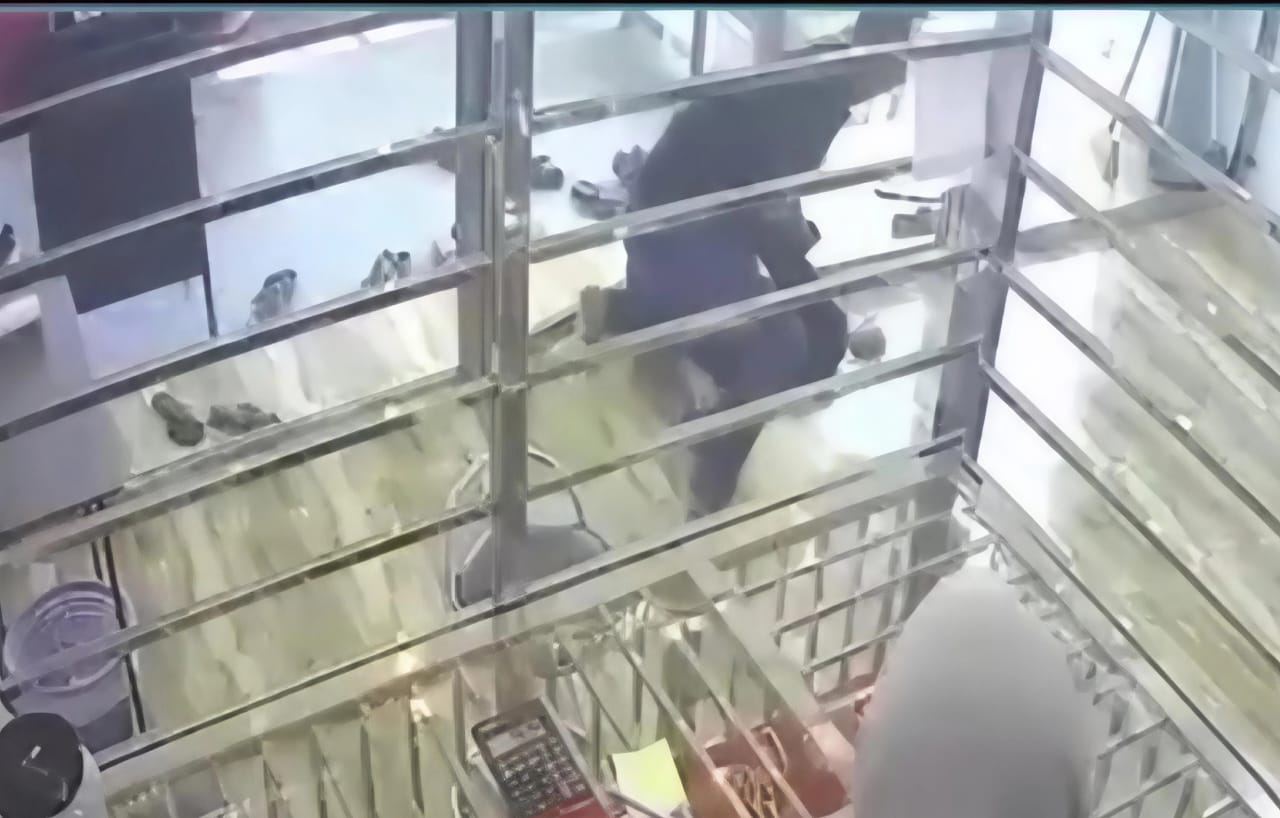 Tangkap layar rakaman televisyen litar tertutup memaparkan suspek berjaya ditangkap seorang pelanggan lelaki di sebuah kedai emas di Paka, Dungun kelmarin.