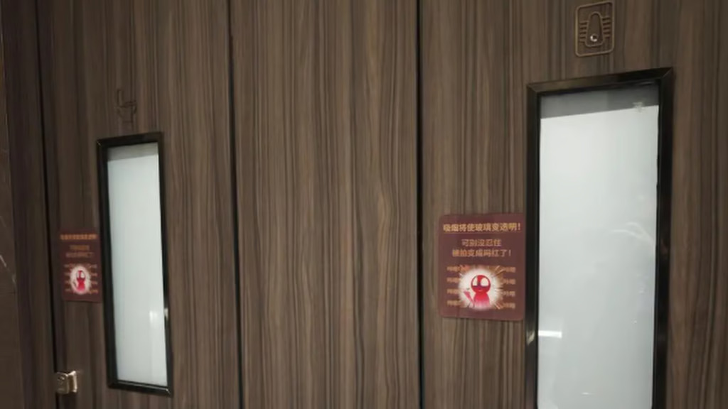 Pihak pengurusan dua premis tersebut mahu memastikan pengguna tandas menyedari fungsi tersebut melalui notis pada pintu tandas berkenaan menyatakan: “Cermin ini akan menjadi lut sinar jika anda merokok.