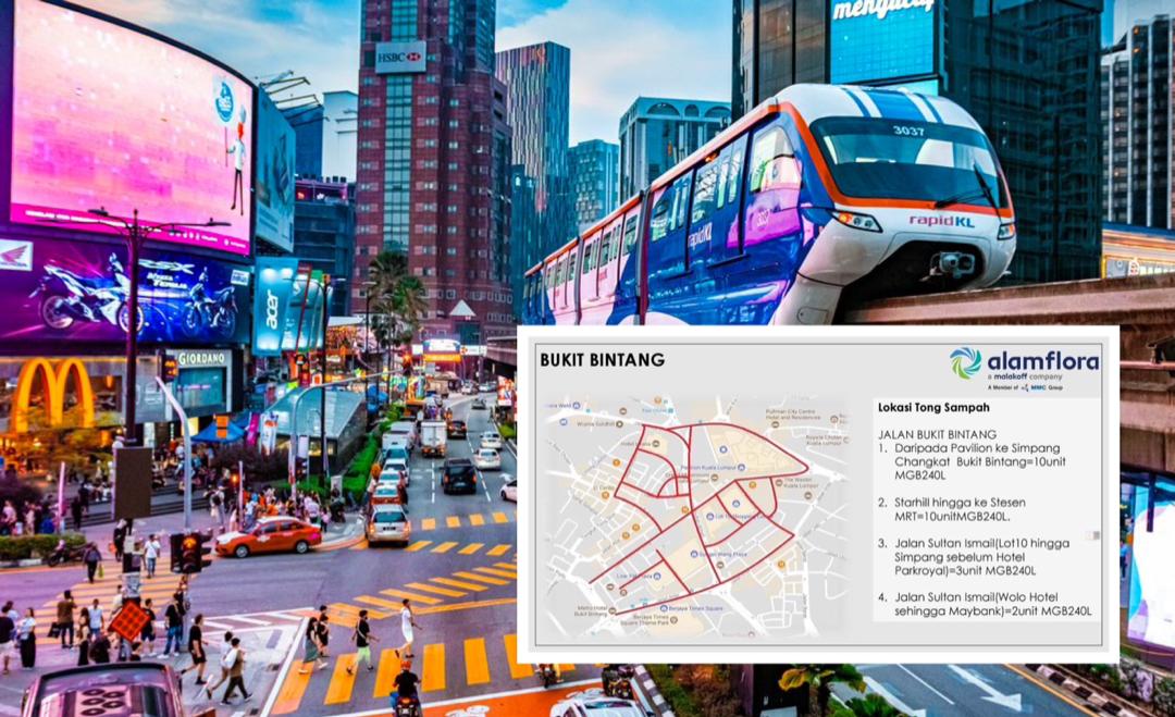 Katanya, sebanyak 10 unit tong sampah ditempatkan di laluan dari Pavilion Kuala Lumpur hingga ke simpang Changkat Bukit Bintang, manakala 10 unit lagi disediakan dari Starhill Gallery hingga ke Stesen Transit Aliran Massa Bukit Bintang.