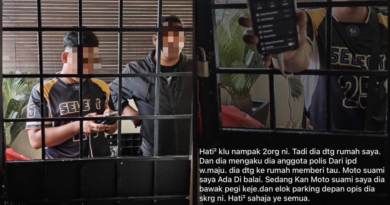 “Dalam hantaran tersebut pemilik akaun menyatakan terdapat dua orang lelaki Melayu telah datang ke rumah beliau dan memperkenalkan diri sebagai anggota polis daripada IPD Wangsa Maju bertanyakan berkaitan motosikal milik suaminya ditahan di balai polis.