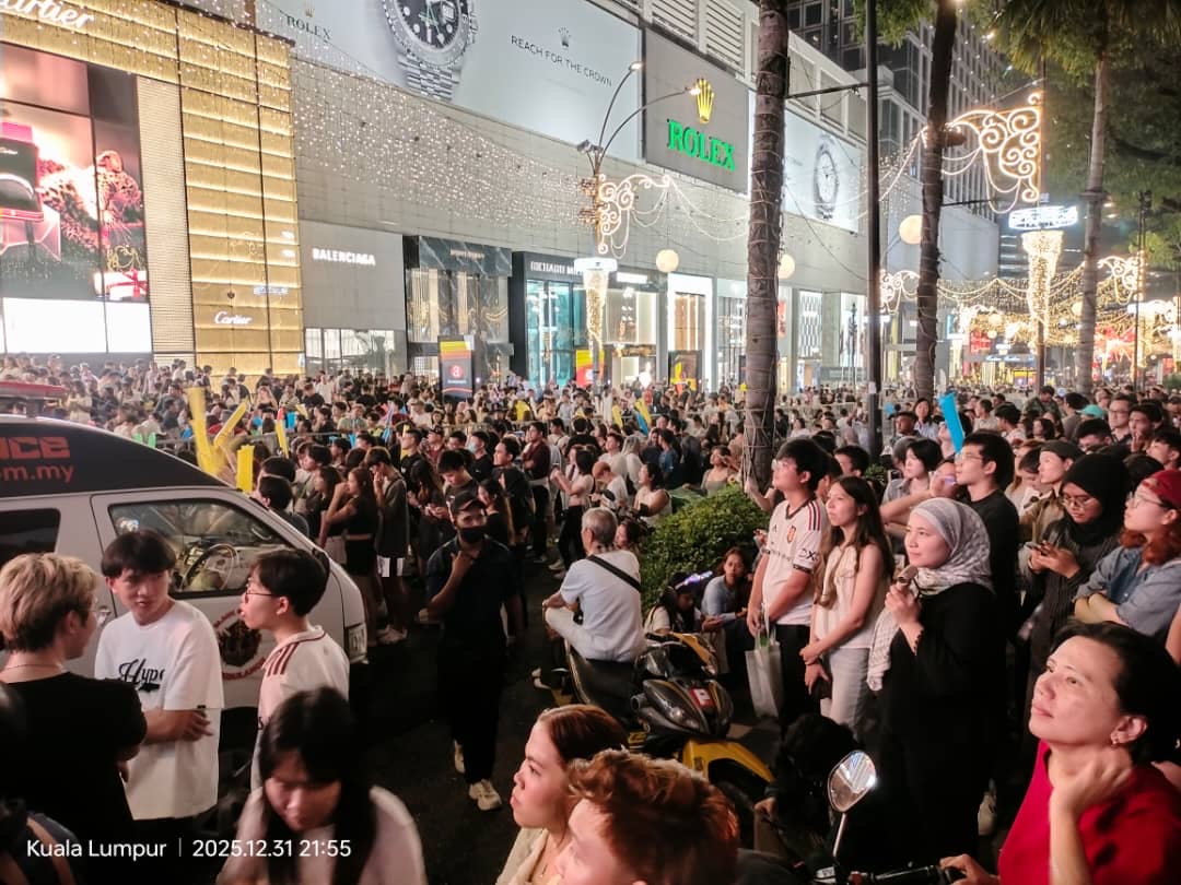 KUALA LUMPUR – Pekarangan pusat beli-belah Pavilion, Bukit Bintang kini menjadi tumpuan warga kota bagi sambutan ambang tahun baharu tengah malam ini.