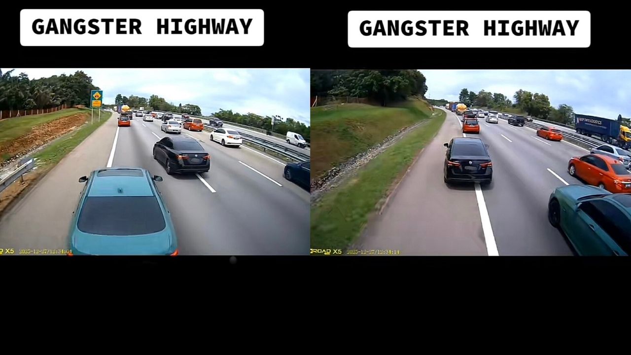 Menerusi perkongsian rakaman kamera papan pemuka (dashcam) di TikTok oleh @kecik_din, kelihatan dua buah kereta sedan secara tiba-tiba menyelit di hadapan lori yang dipandu ketika keadaan trafik di lebuh raya sedang sesak.