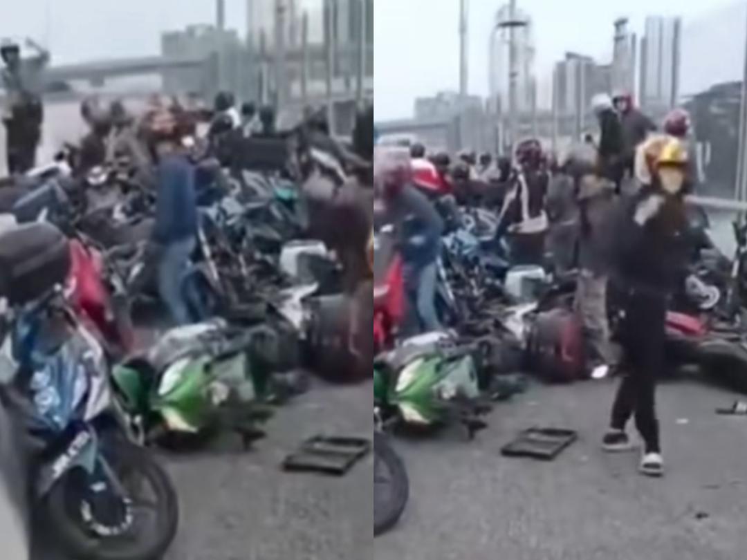 Menerusi perkongsian pengguna di media sosial, kejadian itu menyebabkan beberapa buah motosikal bertindih di laluan tersebut, sekali gus mencetuskan kebimbangan dalam kalangan penunggang lain yang melalui kawasan berkenaan.