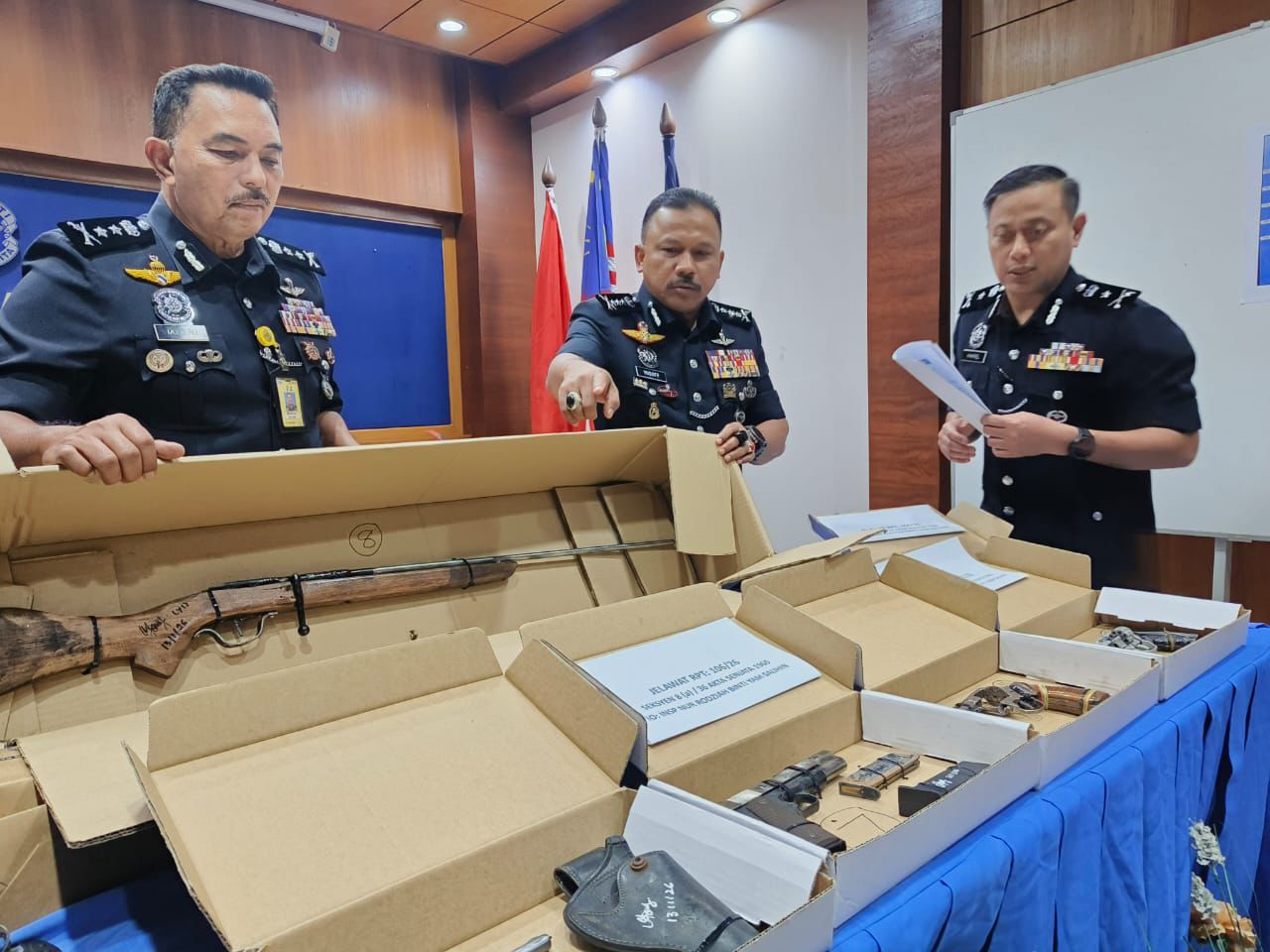 Selain senjata api, sebanyak 27 biji serbuk kaliber, dua kelopak peluru, sebuah motosikal dan tiga buah telefon bimbit turut dirampas dalam serbuan kira-kira pukul 5 petang itu.