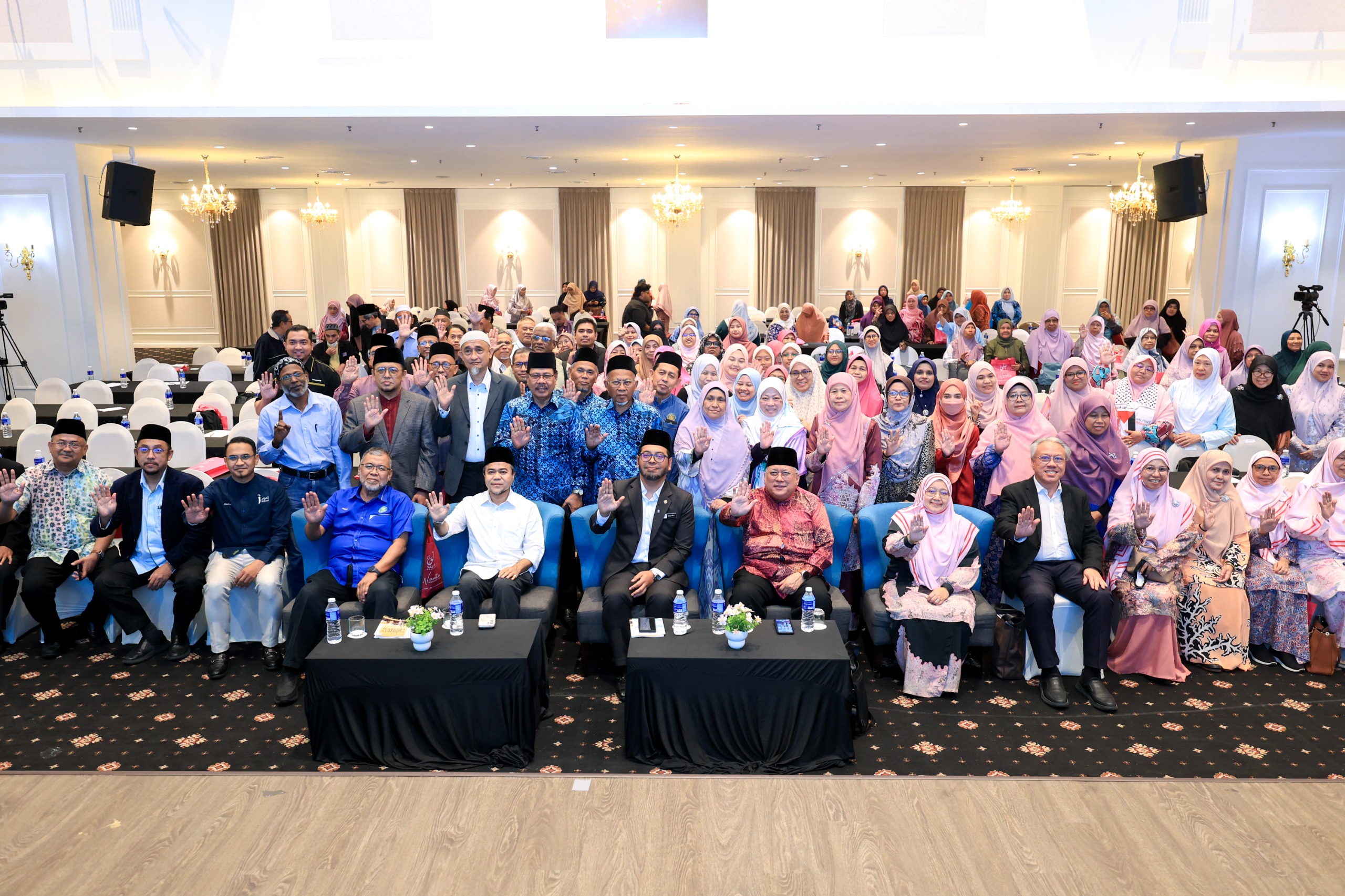 Zulkifli (duduk, tengah) bergambar selepas merasmikan penutup Konvensyen Dakwa Negara: Mendepani Isu Sosial Umat di ibu negara, hari ini. Foto oleh FARIZ RUSADIO/KOSMO!