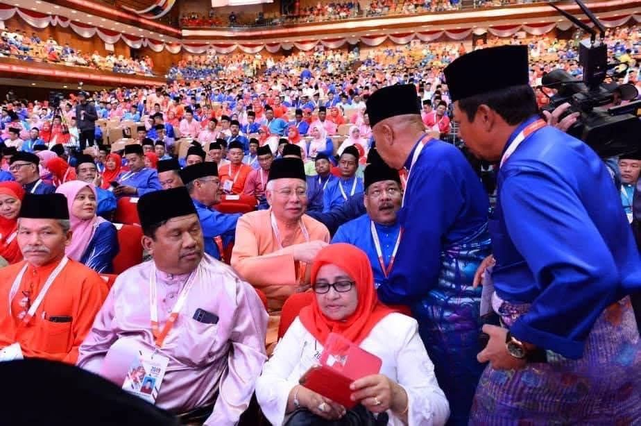 Walaupun tidak berada secara fizikal di dewan persidangan, nama Najib masih disebut dalam perbualan ahli dan perwakilan, khususnya ketika membicarakan sejarah perjuangan dan kepimpinan UMNO.