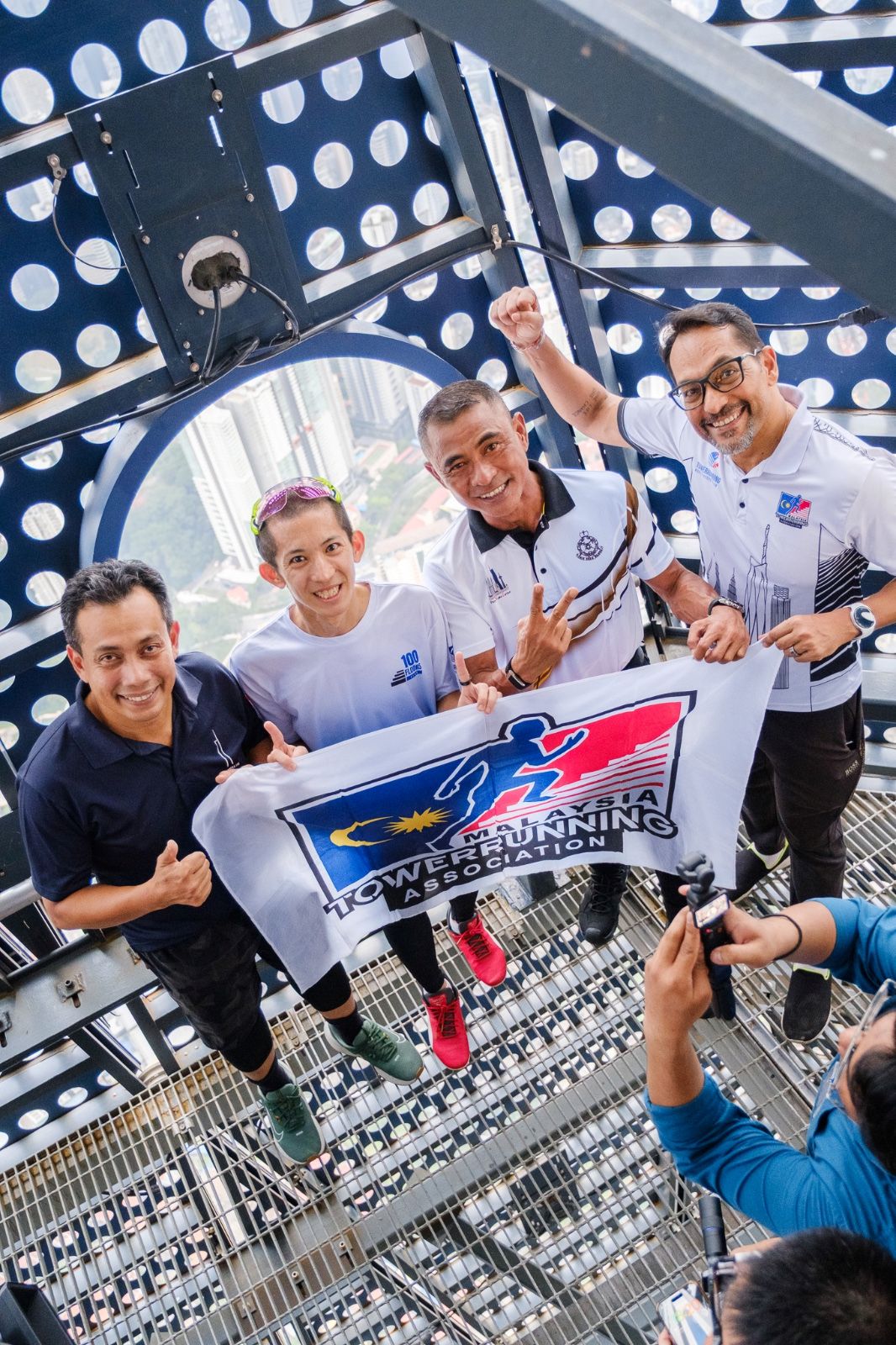 Izwan (dua dari kanan) bersama Soh Wai Ching (dua dari kiri) pada acara pendakian ke Menara Merdeka 118 semalam.