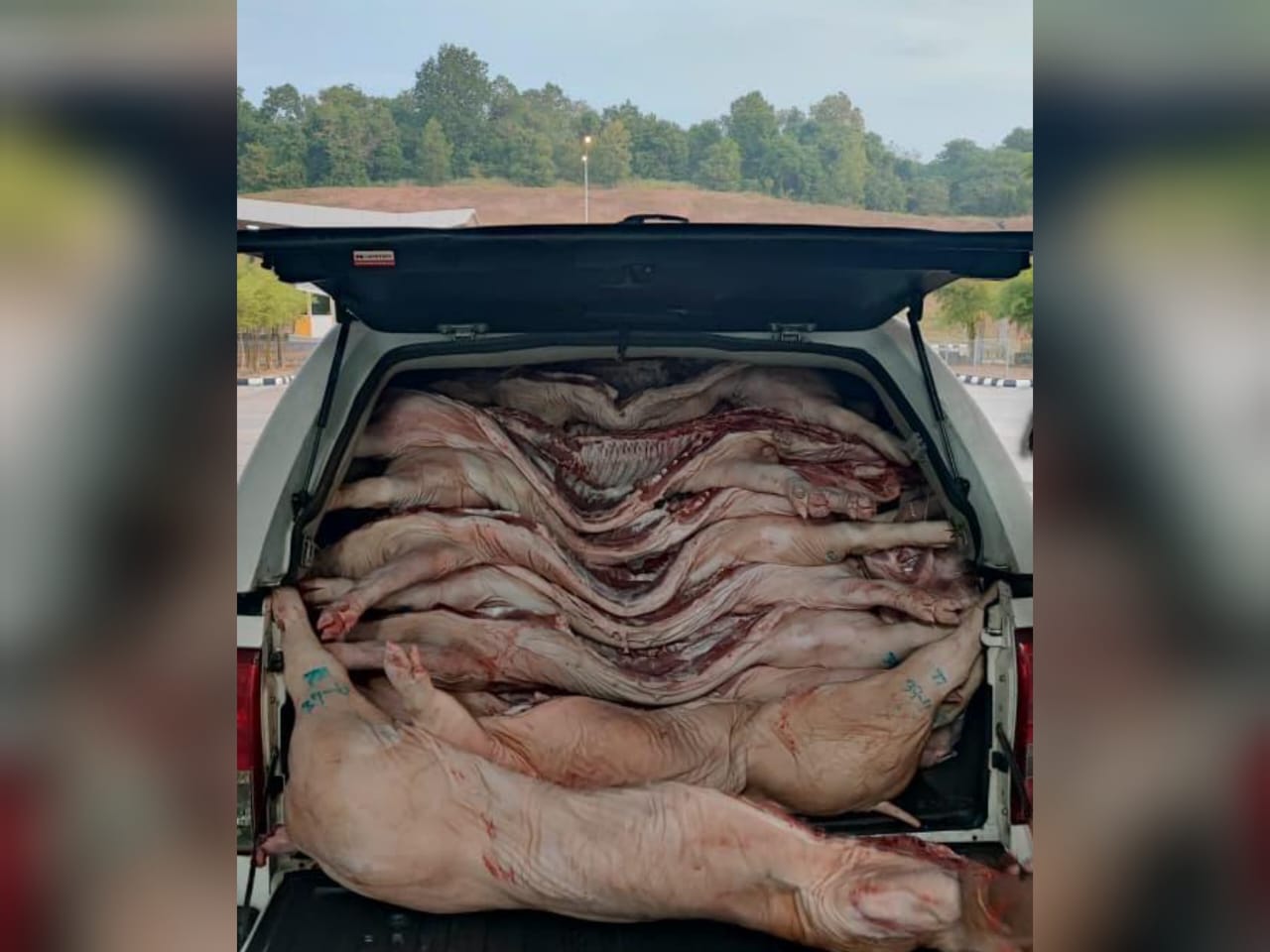 “Selepas pemeriksaan menyeluruh dijalankan, berat bersih kenderaan direkodkan sebanyak 2,200 kg. Perbezaan berat tersebut menimbulkan syak sebelum membawa kepada penemuan muatan tidak sah yang disahkan sebagai daging babi jenis karkas,” katanya di sini hari ini.