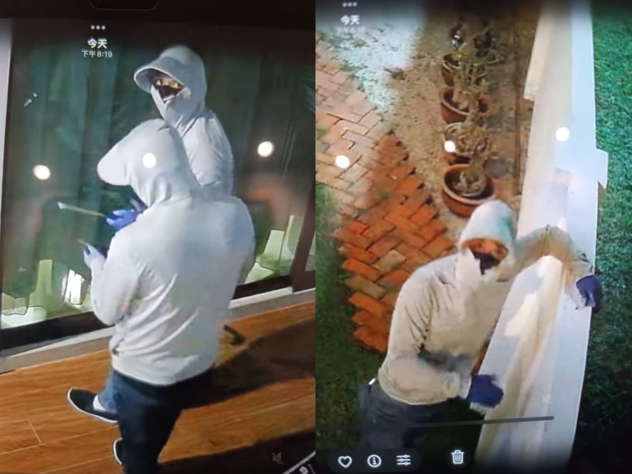“Rakaman CCTV berkenaan menunjukkan dua individu disyaki lelaki telah memecah masuk ke dalam rumah mangsa, manakala seorang lagi dipercayai bertindak sebagai pemerhati di luar kediaman tersebut.