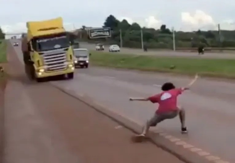 ASUNCION – Seorang remaja di Paraguay ditahan kerana melompat di tengah jalan raya sambil mengacah sebuah treler, menyebabkan pemandu kenderaan berat itu nyaris hilang kawalan, lapor akhbar The Sun UK.