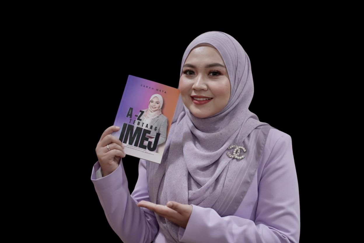 SARAH HATA menunjukkan salah satu buku berkaitan perunding imej dan kecantikan bertajuk A-Z Tentang Imej yang dtulisnya.