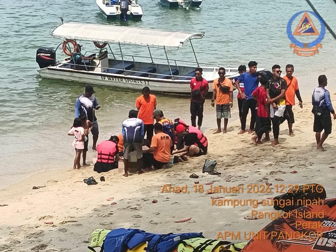Seorang pelancong wanita warga Taiwan lemas ketika melakukan aktiviti snorkeling bersama keluarga di Pulau Giam, Pantai Teluk Nipah dekat Pulau Pangkor di Lumut hari ini.