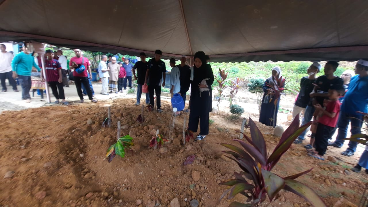 Lebih 500 orang terdiri daripada ahli keluarga termasuk dari Terengganu, rakan-rakan dan penduduk setempat hadir memberikan penghormatan terakhir.