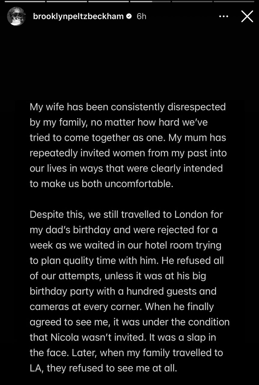 Konflik berpanjangan Brooklyn dengan ibu bapanya, David dan Victoria Beckham terus menjadi perhatian umum apabila keadaan menjadi semakin tegang selepas peguam terlibat.