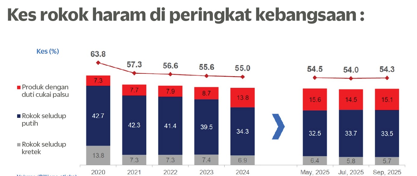 “Namun, hasil pasaran menceritakan kisah yang lebih kompleks, anggaran menunjukkan bahawa pasaran rokok haram di Malaysia bernilai sehingga RM5 bilion setahun.